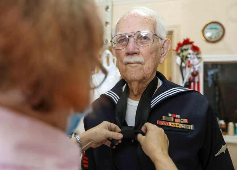 The 96-year-old veteran still had his original U.S. Navy uniform that he wore when he enlisted in 1941. He wanted to be buried in it, but it no longer fit.
