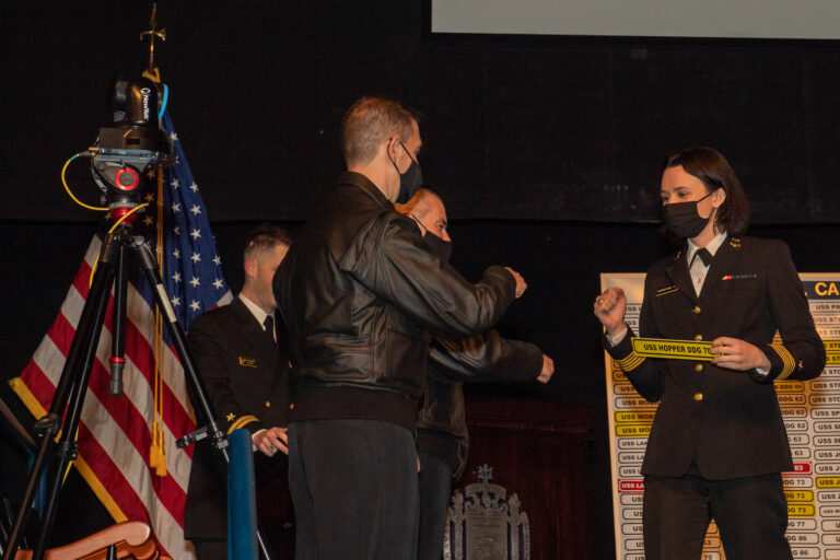 Each of the 273 midshipmen got to walk up on the stage, as a song played, and pull the ship nameplate off of a board. Midshipmen could choose ships out of Everett, Washington, Norfolk, Virginia, San Diego, California, Pearl Harbor, Hawaii, Mayport, Florida, Rota, Spain, Yokosuka, Japan, and Sasebo, Japan.