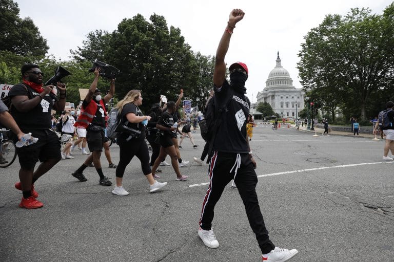 In one video posted on Twitter by independent journalist Brendan Gutenschwager, protesters can be heard chanting, “If we don’t get it, burn it down” as they march through the nation’s capital.