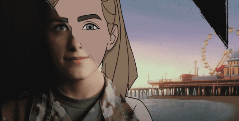 “This is the story of a soldier who operates your nation’s Patriot Missile Defense Systems,” the ad begins as an animated female soldier called “Emma” appears on screen. “It begins in California with a little girl raised by two moms.”