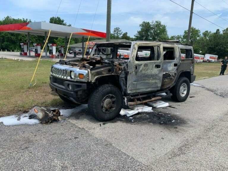 Firefighters found the Hummer H2 engulfed in flames Wednesday near a Texaco gas station, WFLA Channel 8 reports. One person was injured but refused treatment.
