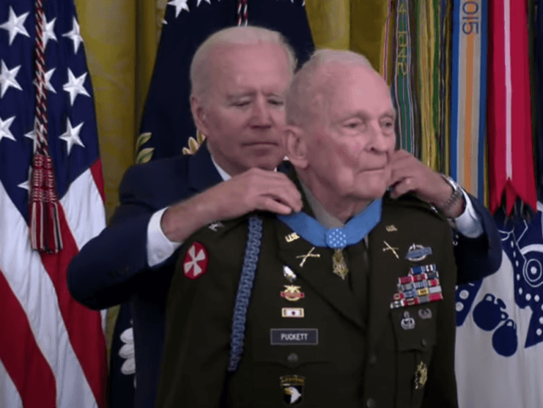 President Joe Biden presented the 94-year-old Puckett with the highest U.S. military decoration in recognition of his actions during the battle at Hill 205 on Nov. 25 and 26, 1950. Puckett is the first service member to be presented with the Medal of Honor since Biden took office.