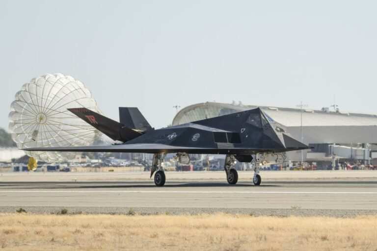 Nonetheless, the F-117’s all-black look and sharp triangular shape tends to make the jet stand out.
