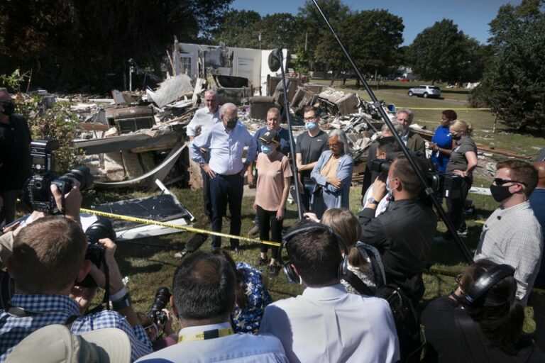 Washington Post journalist Zach Purser Brown shared video of the heckling comments, tweeting, “‘It’s sad that America has come to this.’ BIDEN takes a barrage of heckles from people behind a fence waving a Trump flag as he tours flood damage in the Lost Valley neighborhood of Manville, N.J.”