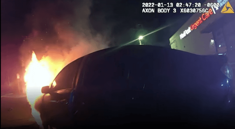 Around 3 a.m. on Jan. 13, San Antonio Officer Bianca Garcia responded to reports of a car that had burst into flames in an Urgent Care parking lot on West Hildebrand Avenue and Fredericksburg Road, the department said in a statement posted on Facebook.