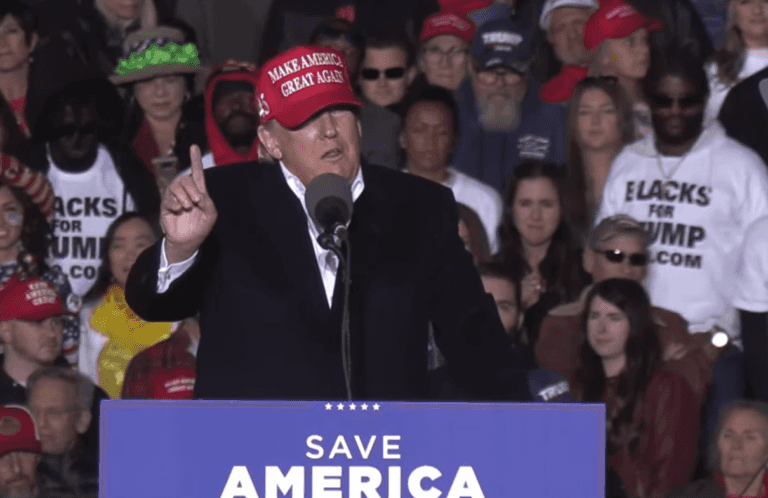 The notice said attendees of Trump’s speech are agreeing “to a search of your person and belongings,” and provided the following list of prohibited items: