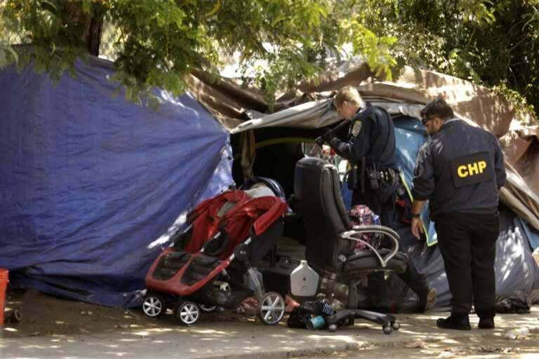 Deric Lewis, who lives in a tent in the encampment, said the suspect came into his tent Monday night and spent the night there. “He had a gun and blood all over his clothes,” Lewis said.