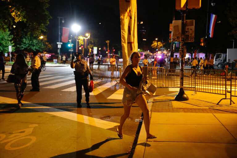 On Tuesday morning, the Parkway was littered with things people had left behind: shoes, baby strollers, star-spangled hats. Overturned metal barricades lay on their sides, and folding chairs sat on the pavement, some overturned.