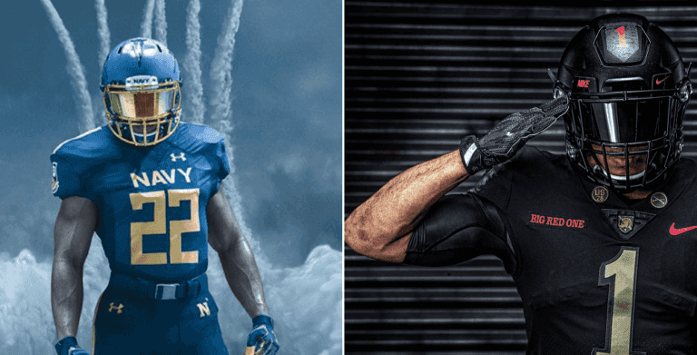 West Point paid tribute to the Army’s 1st Infantry Division, nicknamed the “Big Red One” on their 2018 rivalry game uniforms. The division is famous as being the first permanent division of the active Army, the first fight in World War I and the first to use combined arms operations.